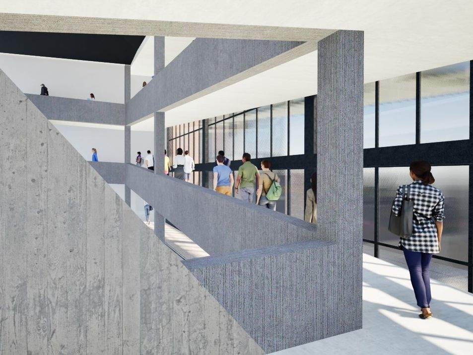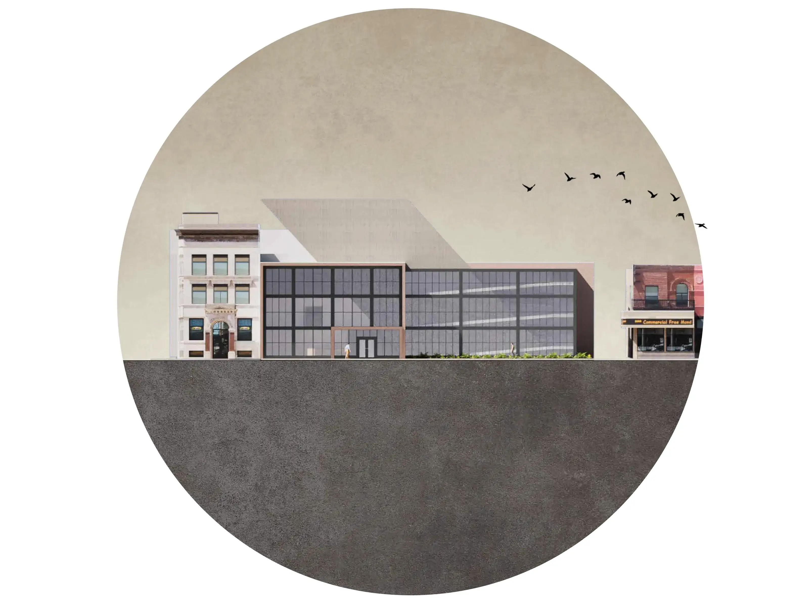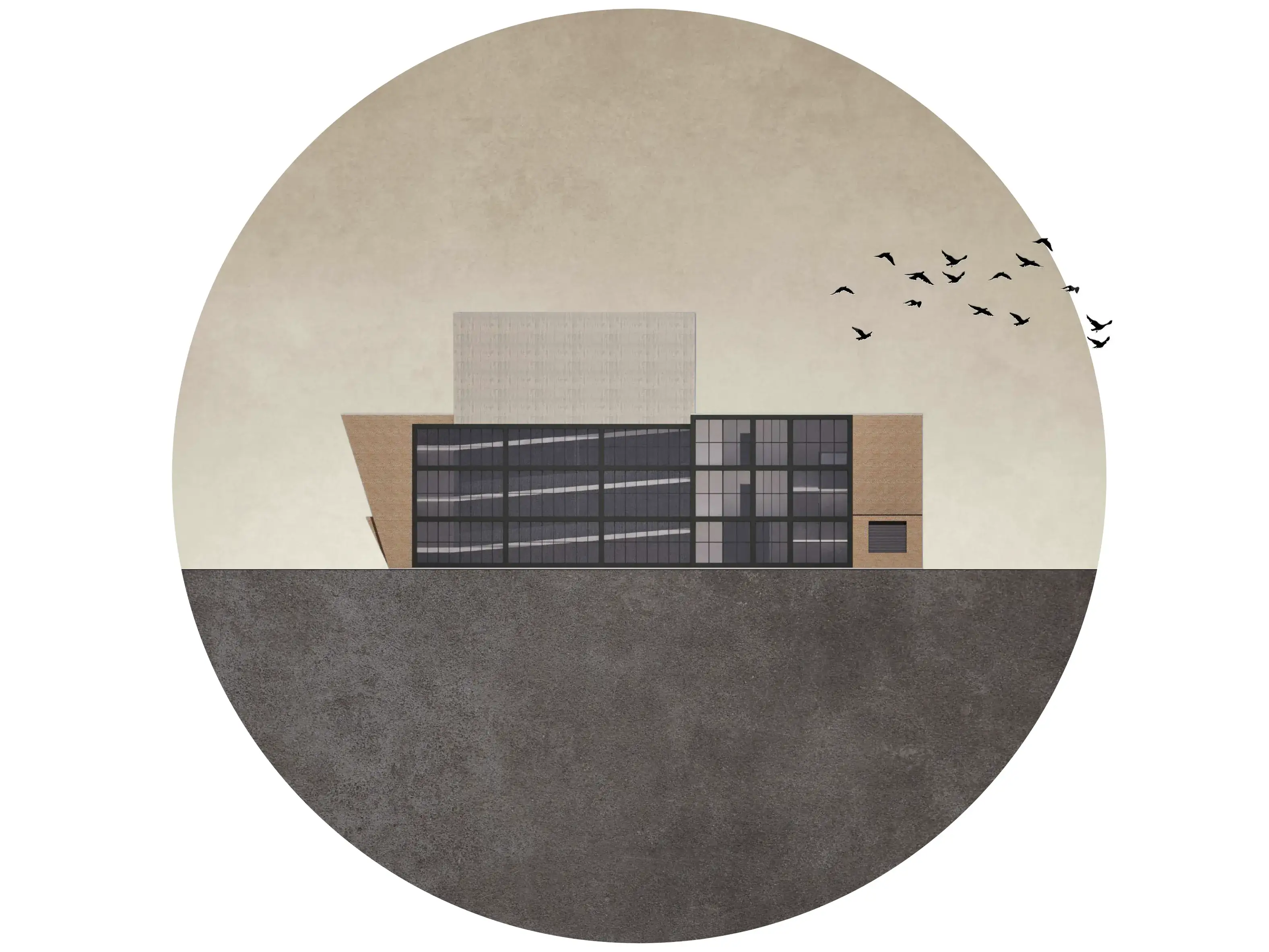 Minioskokpa Museum of Art, located in downtown Fargo, utilizes masonry, concrete, and glass as its focus materials. With this project, I took inspiration from the picturesque northern Minnesota wetlands on the way up to Fargo from Minneapolis. Connecting the building with the land it occupies, the design features a post-tensioned structure with a large cast-in-place concrete column representing a dead log rising up from a pond. A glass curtain wall mimics still pond water, and brick, taking up the rest of the facade resembles a muddy shoreline.